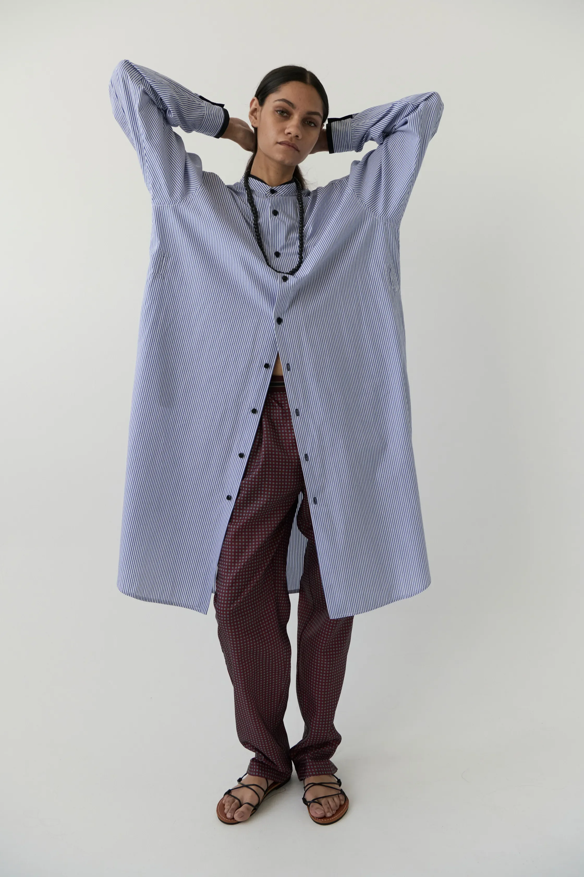 That project is Emote — “It’s Tome backwards, with an extra ‘e’”, says Lobo—a living, breathing orchestration of clothes fueled by wanderlust in collaboration with artisans around the world: easy dresses, tunics and shorts of his own design mixed with vintage Lanvin, YSL, and Christian Dior Monsieur jackets retailored and cut down, pants and scarves made from silks sourced in Florence, and jaunty block-striped shirting upcycled from a deadstock batch he found in Paros, with everything released in slow-drip drops rather than in collections. Nothing costs more than $800, but plenty of pieces, most in fact, are priced well below that. Emote is dedicated to the idea of what happens when a designer stops thinking about fashion and turns instead to life.